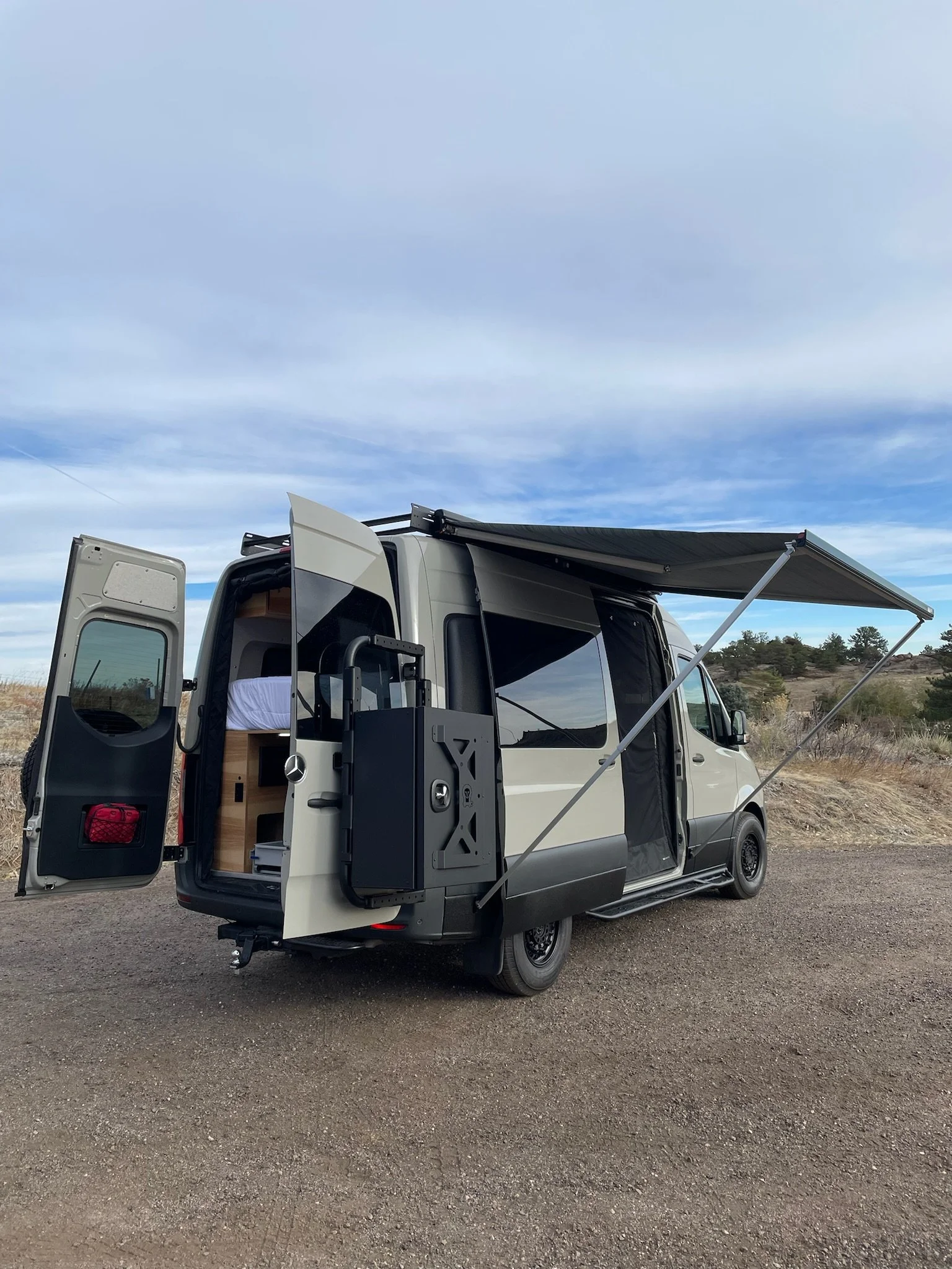 To bring the outside in, we installed a Van Essential Sprinter Bug Screen Bundle to enjoy the awning or just get some fresh air through the slider or rear doors while in the van.