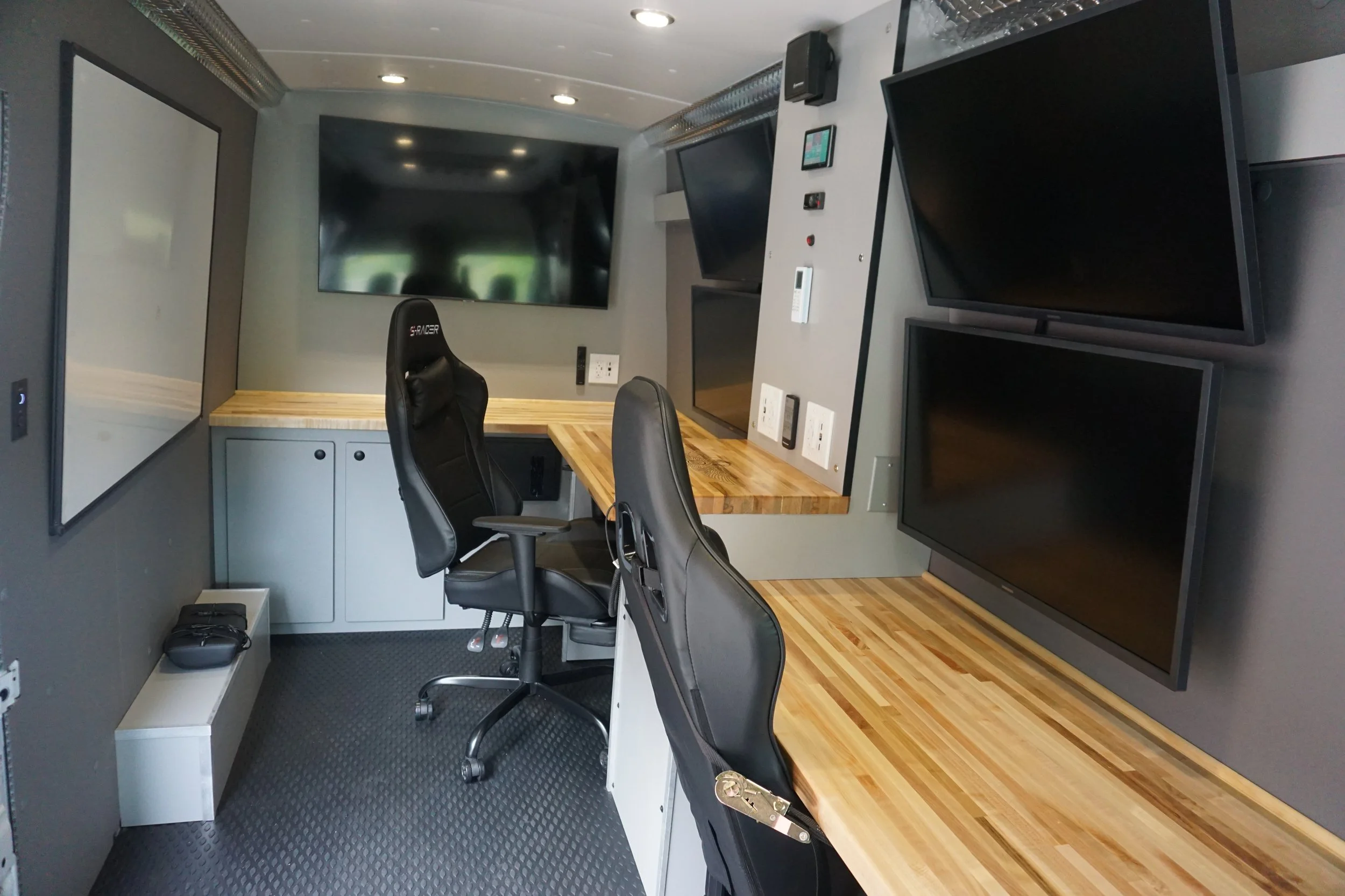 6 monitors with hard wired HDMI inputs and ethernet ports for mobile internet